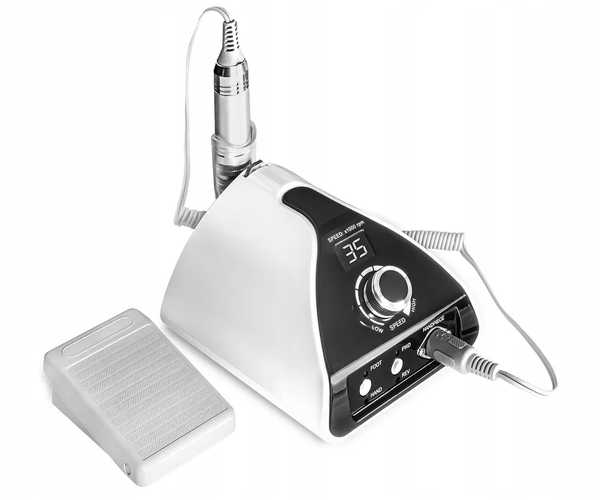 Особенности : | автоотключение при перегрузке, дисплей, набор фрез в комплекте, отсутствие вибрации, педаль, плавная регулировка, подставка для наконечника, цанговый зажим фрезы |