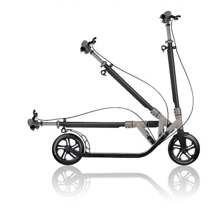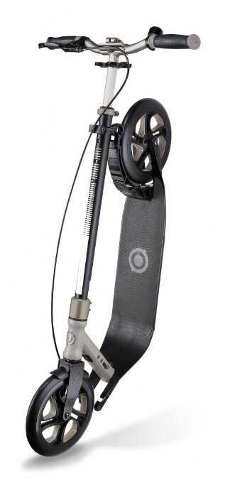 - + 1. Дизайн простой, минималистичный, расцветка не броская(относится к серому цвету) , нет лишних надписей и наклеек; 2. Большой размер самоката, высота руля (при моем росте 190 см на большинстве самокатов руль располагается на уровне бёдер , тут такой проблемы нет), широкая удобная дека; 3. Очень удобный механизм складывания, раскладывания. Процесс занимает около 5-7 секунд.
