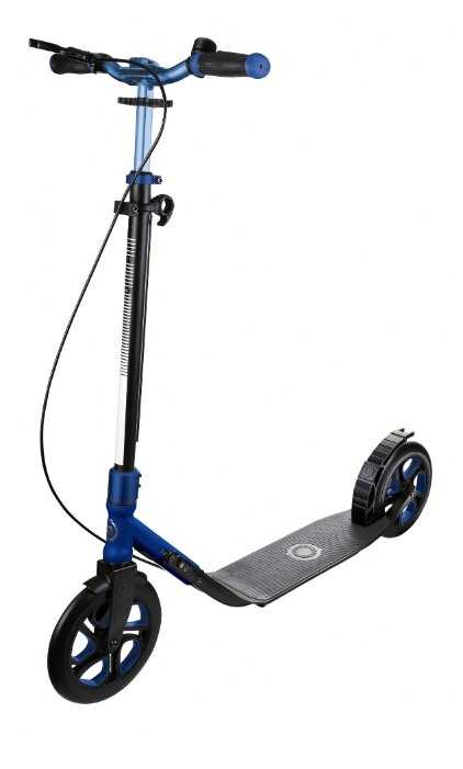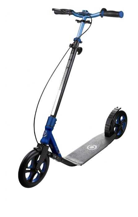 - + Очень хороший накат -скорость развивает приличную, 1-2 раза толкнулся и метров 50 проехал. Большой размер платформы, влезает 2 ноги 46 размера, руль высокий для роста 187 см+ самое то. для 90 кг+ веса обязателен тормоз ручной и ножной, а то с горки можно улететь. Руль каким то образом центрируется, когда его отпускаешь или не сильно держишь. Для прямолинейной езды удобно. Удобный механизм складывания . Самокат для взрослых