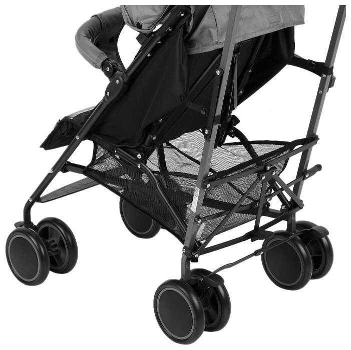 - + Маневренность .Большой козырёк ,который достаёт до бампера ,что позволяет малышу спать в тени ,и укрыться от солнышка и ветра.Наличие бампера,что вообще редкость для тростей .Удобное разложение спинки ,что позволяет не будить малыша,если он уснул.