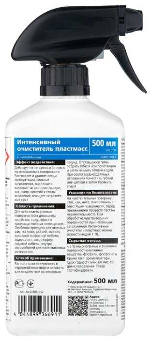 | Подробная комплектация : | Интенсивный очиститель пластмасс, Pufas Glutoclean Kunststoff Intensiv Reiniger, 750 мл. - 1 шт |
