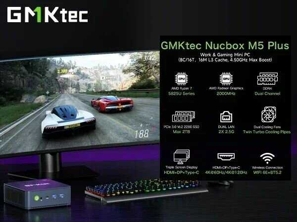 GMKtec M5Plus — это блестящий пример того, каким должен быть современный мини-ПК. Он предлагает мощь, достаточную для подавляющего большинства домашних и офисных задач, в невероятно компактном и стильном корпусе.