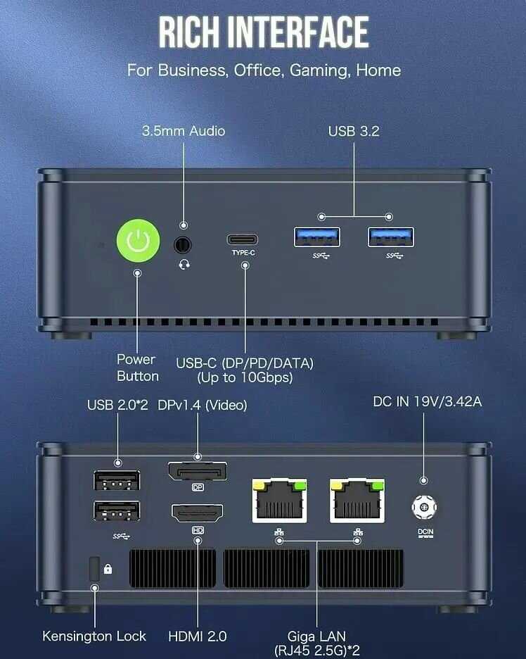 - + Отличный мини ПК, работает тихо, железо ок, Windows 11 Pro предустановлена (кому важно)