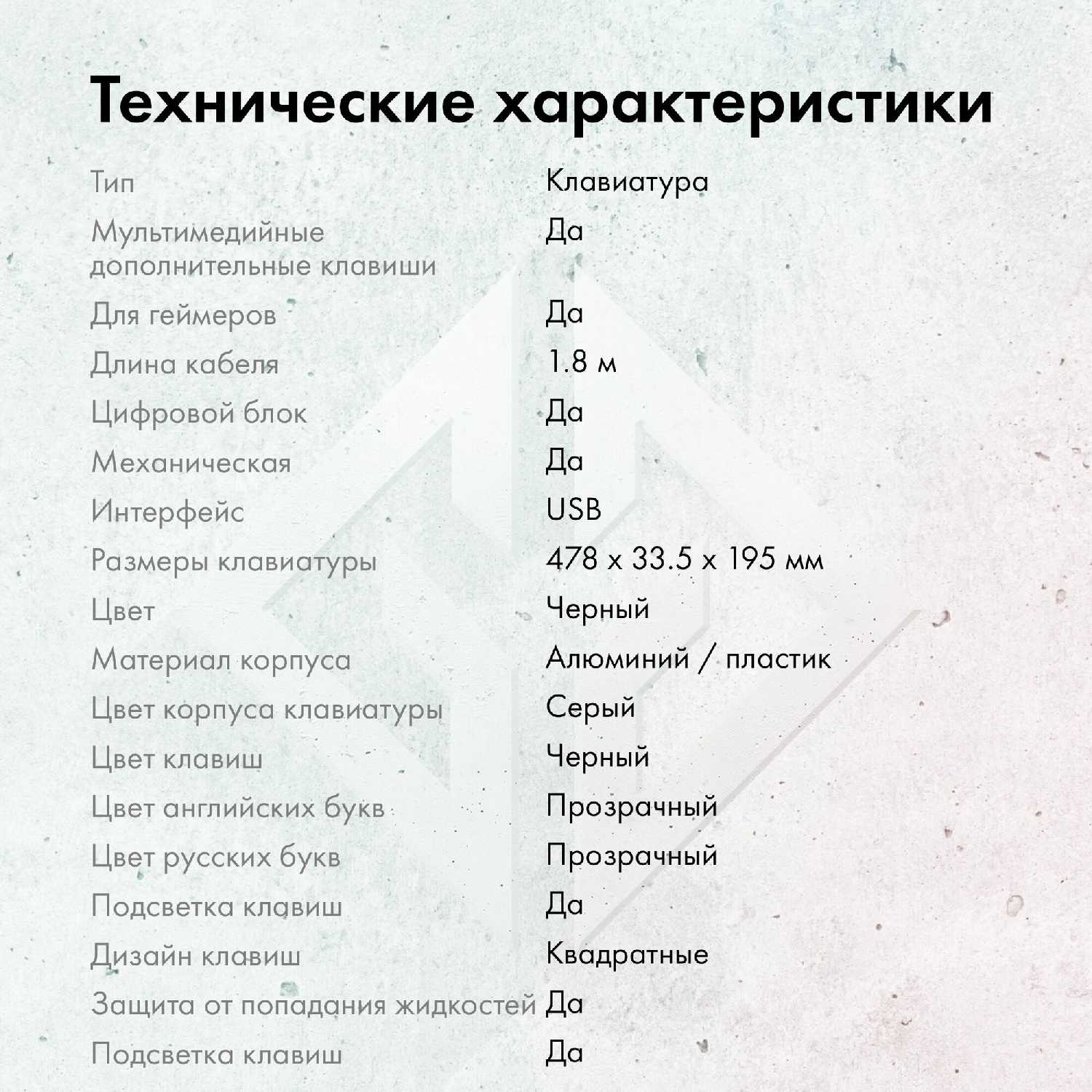 - Дренажные каналы под клавишами выдерживают пролитие до 100 мл жидкости.