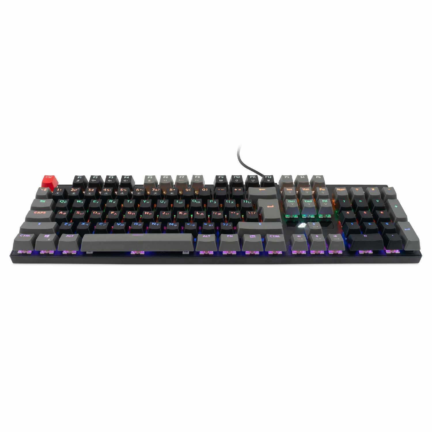 Брал клавиатуру для игр, она оказалась удобной, случайных нажатий не было. Клавиши разноцветные, с прозрачными буквами, которые светятся разными цветами благодаря подсветке. Подсветка играет важную роль в этой клавиатуре, так как без неё в темноте буквы и цифры слабо видны, это не проблема, так как подсветка имеет 13 режимов, несколько уровней яркости и скорости, можно её отключить, но она теряет свою индивидуальность. Кабель почти 2 м в оплетке. Все клавиши anti-ghosting, удобно во время игр. Хорошая комплектация, в наборе дополнительно 104 сменных кейкапов.