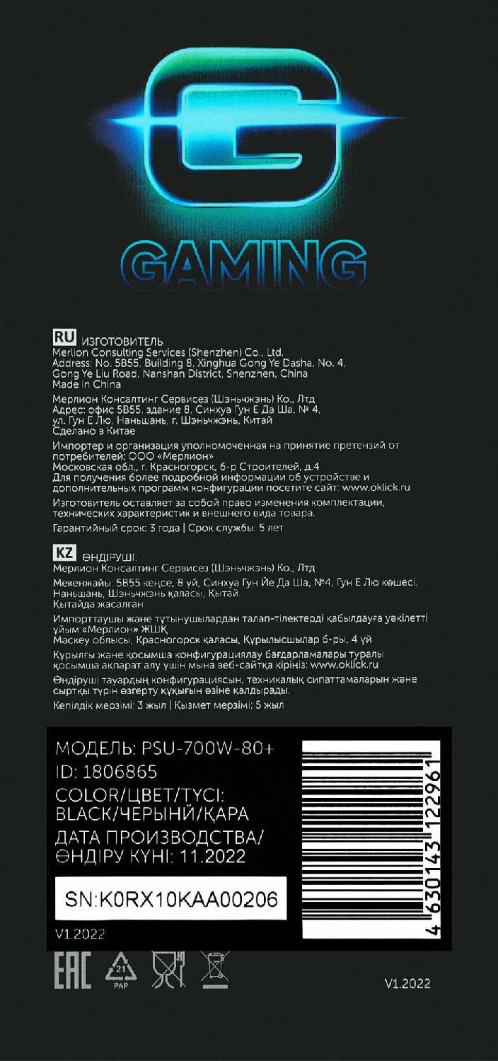 30 отзывов пользователей o GMNG PSU-700W-80+ (700Вт)