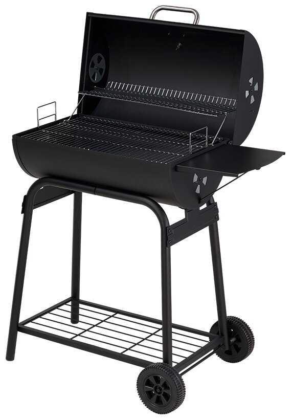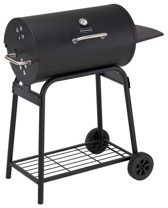 | Особенности : | дровница, колёса, крышка, поддон для сбора жира, разборный, решетка, столик, термометр |