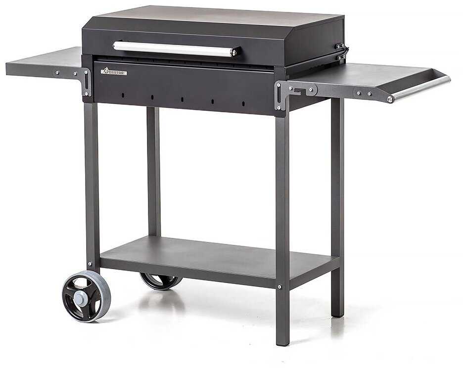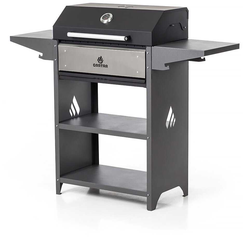 - + Мобильный и объёмный. Шторки притока воздуха помогают обходится без обмахивания углей.