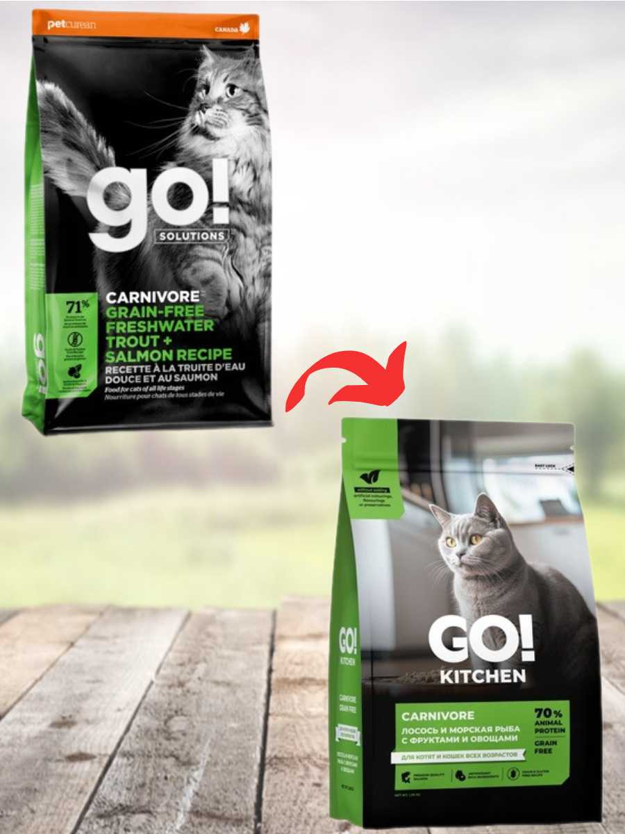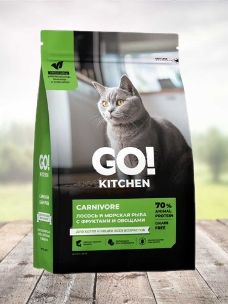 - Риск приобретения контрафакта (имитация бренда "Go Kitchen"), отличающегося по цвету гранул, запаху и реакции животных.
