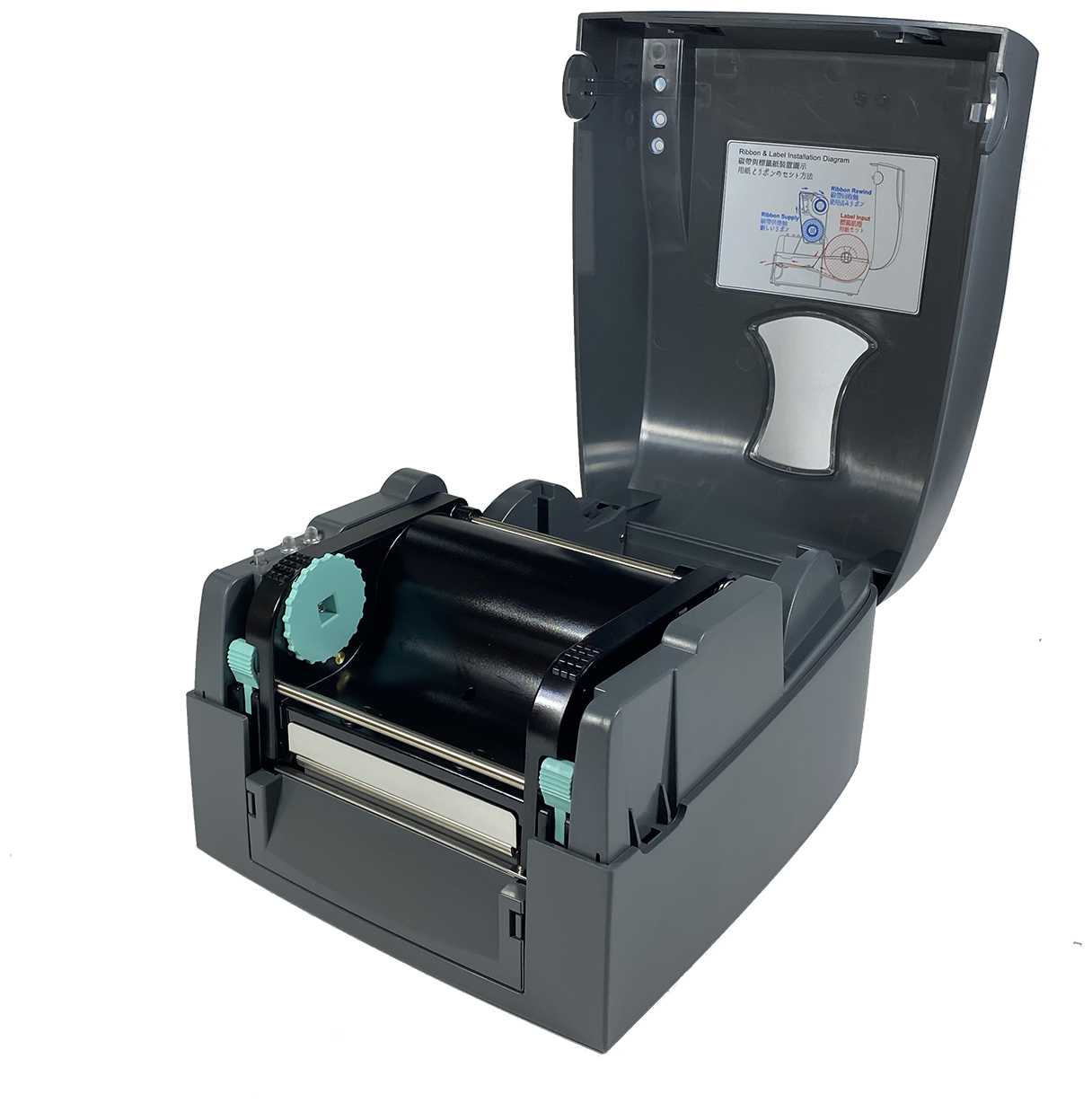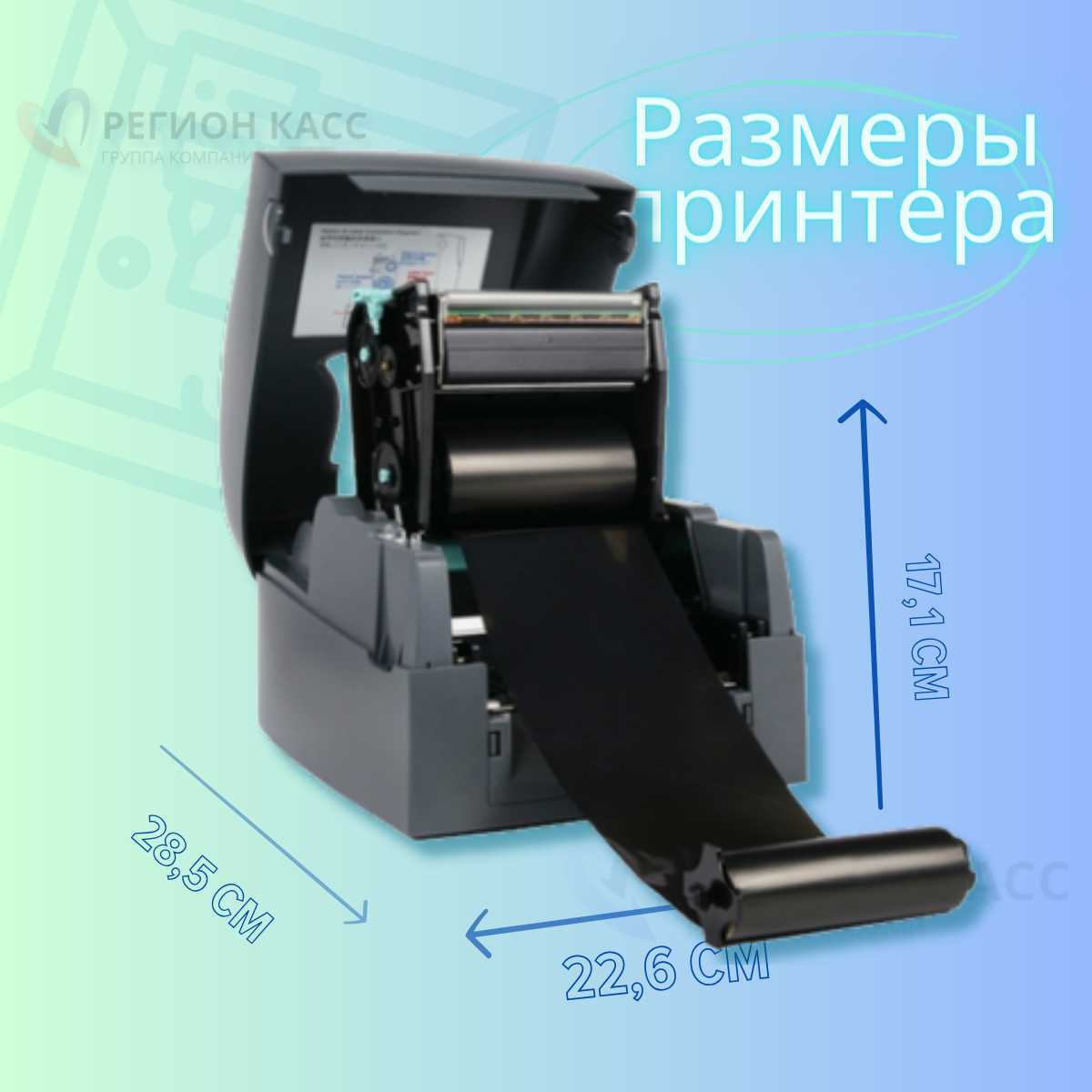 - + Печатает на лентах и наклейках с помощью риббона и может печать термоэтикетки.