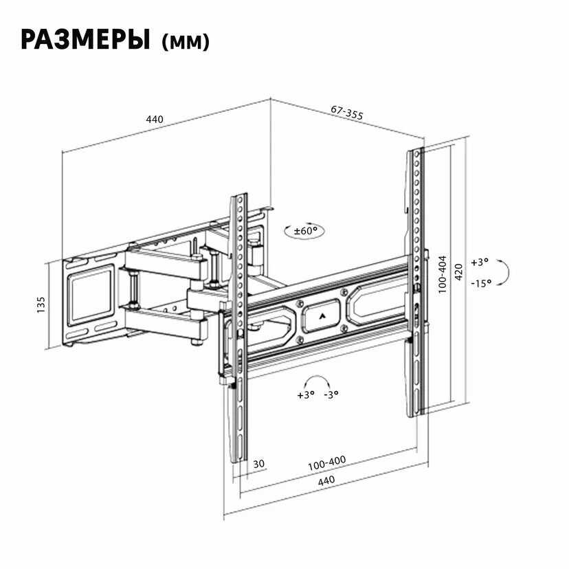 | Способ регулировки : | наклон, наклон и поворот, отступ от стены, поворот |
