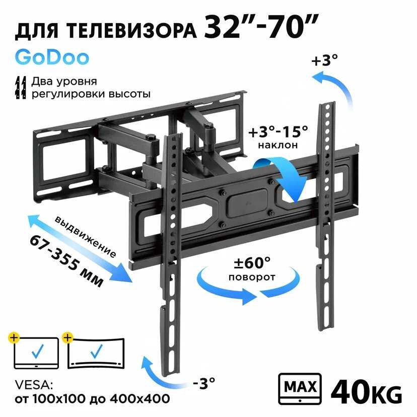 29 отзывов пользователей o GoDoo Кронштейн для телевизора на стену поворотный (GD78-446)