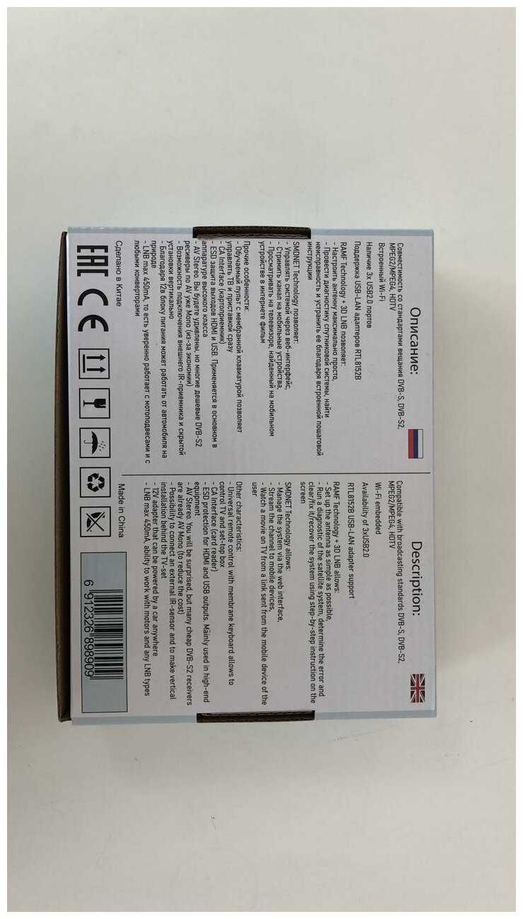 Дополнительная информация : | Данная модель поддерживает опцию мультирум — когда в одной домашней сети окажутся несколько ресиверов, и в один из них будет установлена официальная карта доступа оператора «Телекарта», то автоматически заработают все. Функция R.A.M.F. (Receiver-Analyser-Meter-Finder) позволяет использовать ресивер в режиме профессионального прибора для настройки как с обычным конвертором, так и использование инновационной технологии 3D LNB с интерактивными шкалами поворота конвертора и угла наклона антенны. |