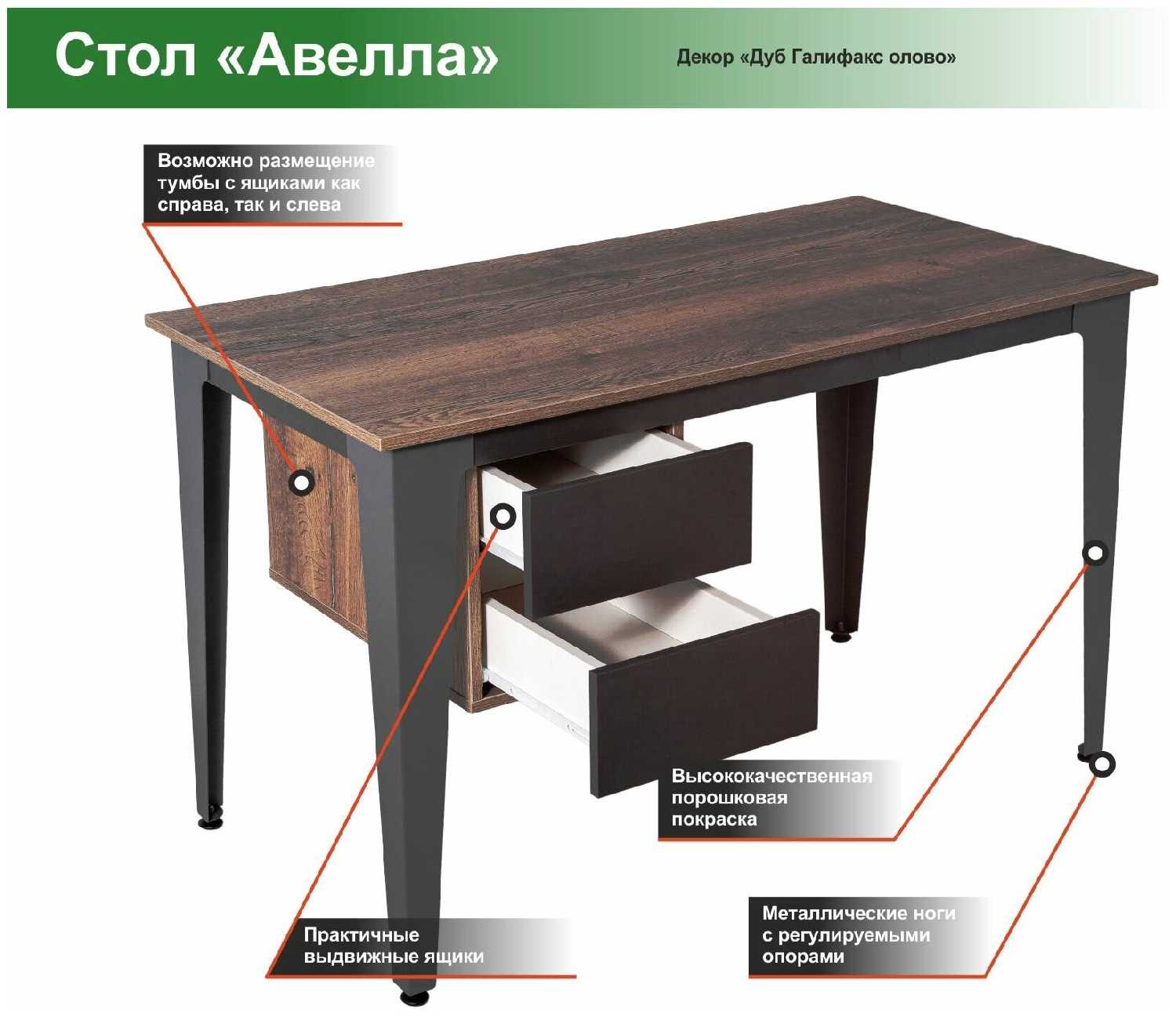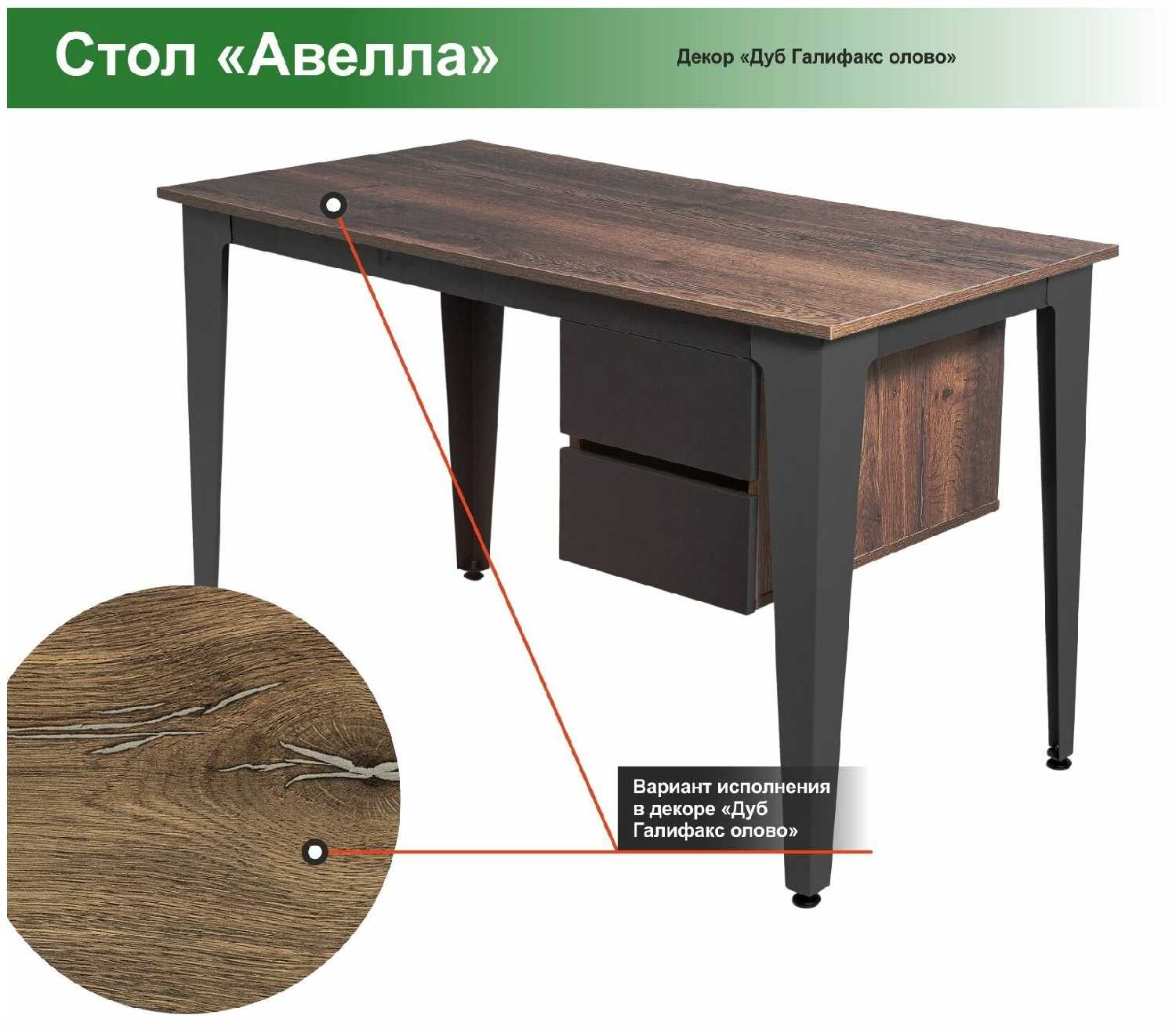 Отзывы о Компьютерный стол Avella с ящиками. Дуб Галифакс олово. Стол Офисный / Рабочий / Письменный. Стол с тумбой.