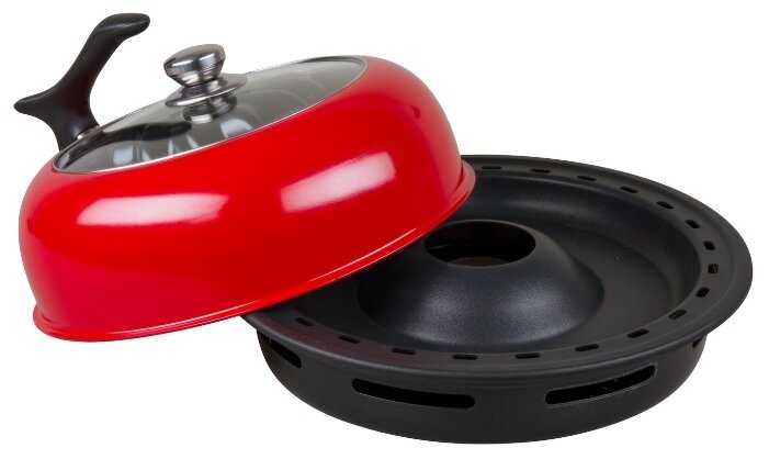 - + при соблюдении инструкции (вода на дне рассекателя, небольшой огонь строго по центру, не открывать в процессе) всё получается норм. покрытие держит, коррозии и отслоений нет. после пары десятков готовок пока как новая.