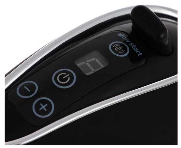 - Кнопки переключения скоростей имеют подсветку и тактильный отклик, что удобно при работе с липкими руками.
