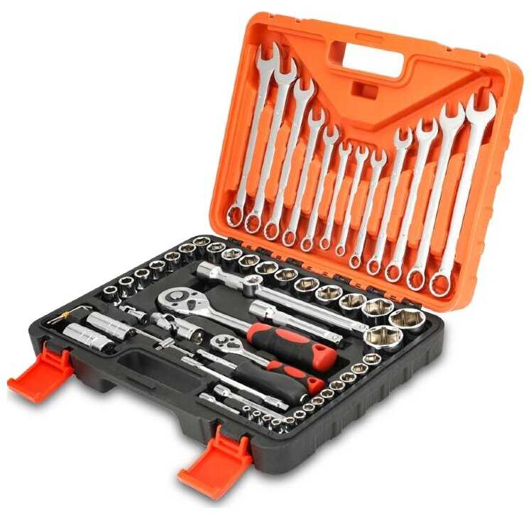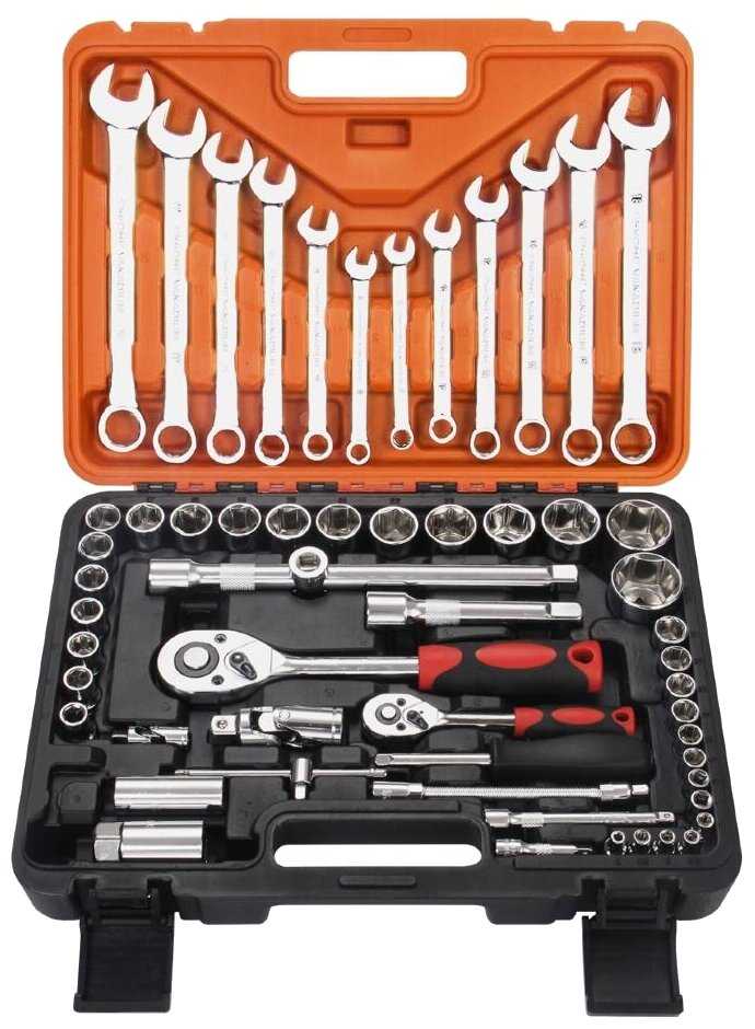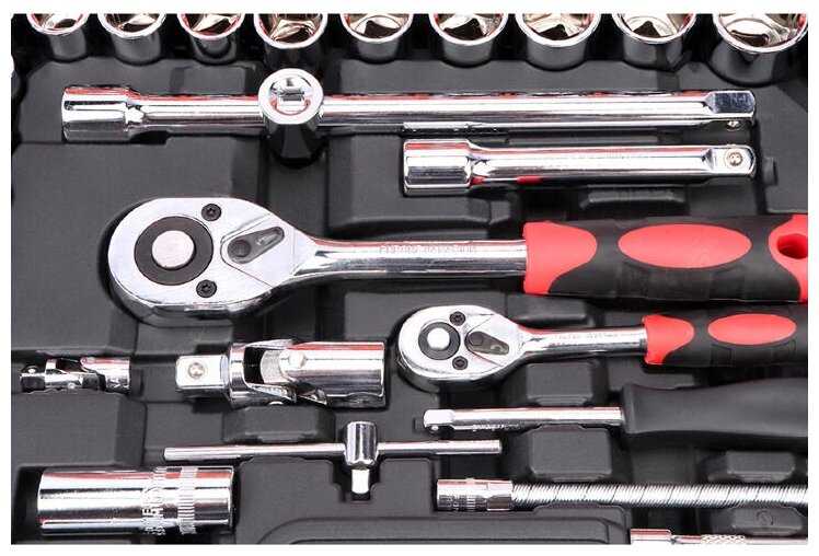 - + Купили набор в качестве расходника для сервиса. И он оказался довольно неплохим. В нем 2 трещотки, торцевые головок разного размера, карданные шарниры, ключи, отвертки и другие мелочи. Случайно уронили кейс и он не разбился).