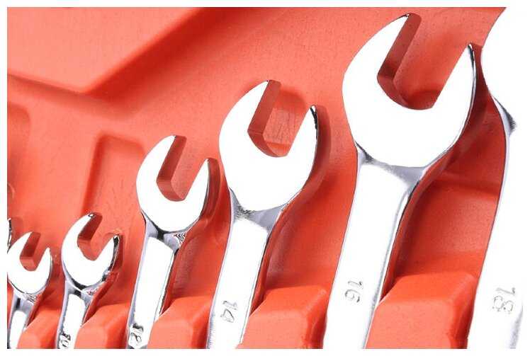 Гаечные ключи подробно : | 2 шт. - трещоточный ключ: 1/2" 1/4", 12 шт. - комбинированный ключ: 8-19 мм |