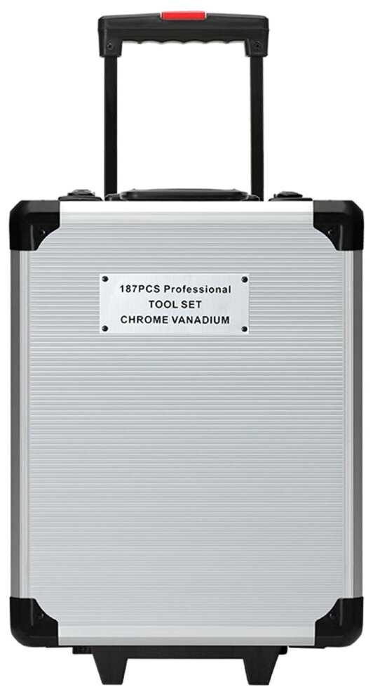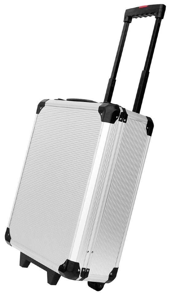 - Чемодан оснащён колёсиками и выдвижной ручкой, что позволяет легко перемещать набор даже при большом весе.
