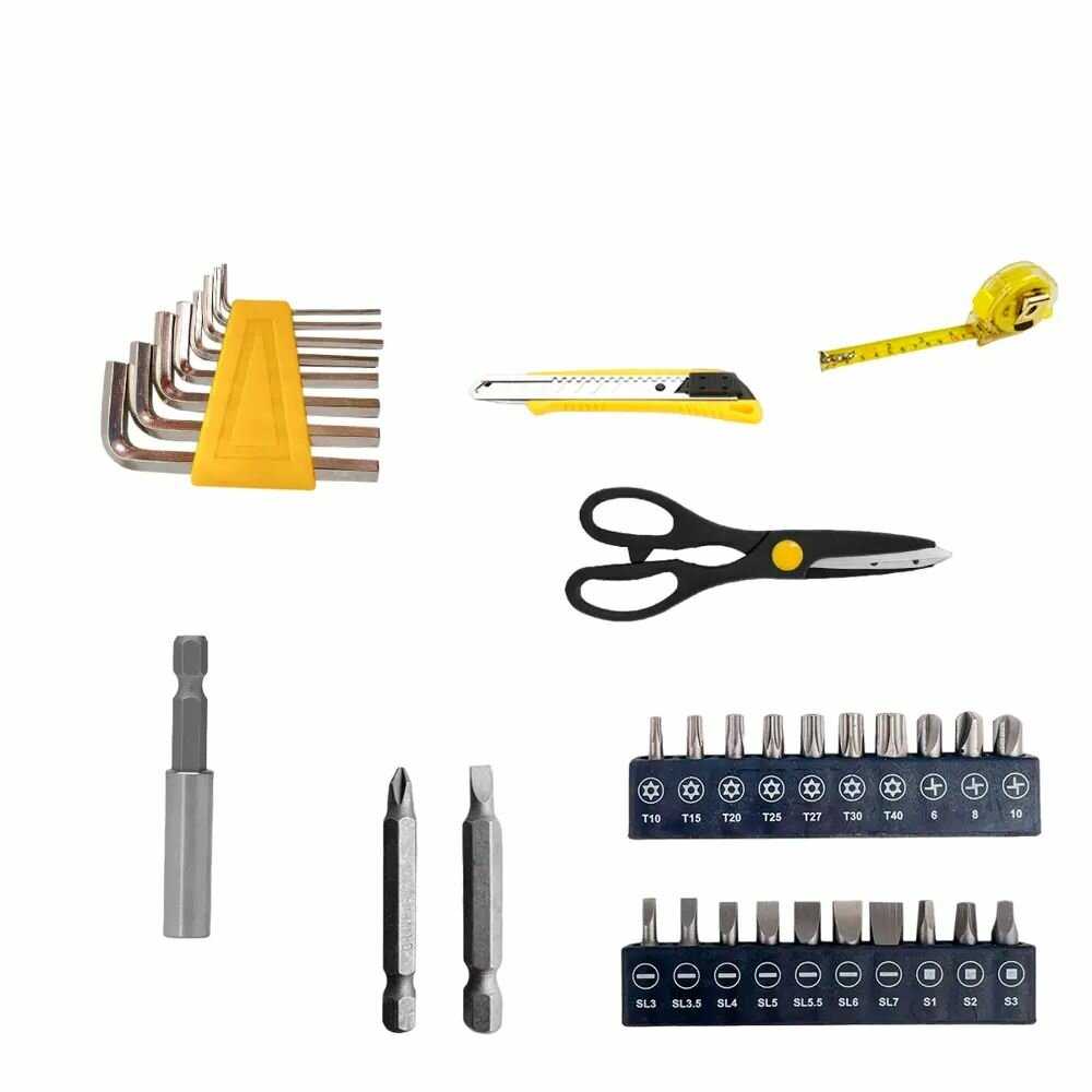 | Аксессуары в комплекте : | держатель для бит, нож, ножницы, рулетка |