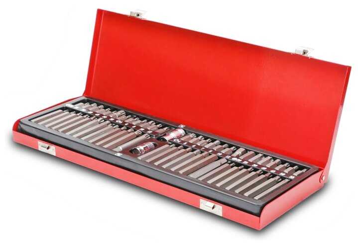 - + Хороший кейс,крепкие защёлки с фиксаторами,внутри чтобы все не выпало крышка из пластика ,средние ложементы в меру фиксируют на позициях биты.Как говорилось выше основные биты продублированы не как...