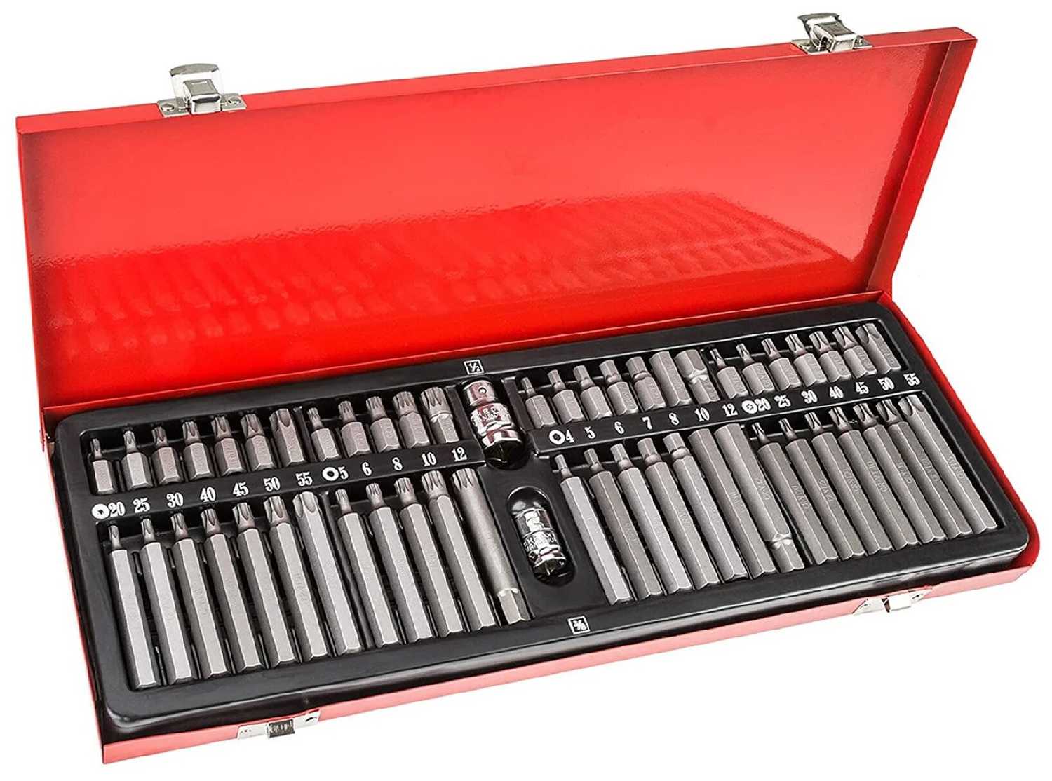 Биты подробно : | 26 шт - биты насадки 30 мм: шестигранные Femelle Hexagon Hex: H4 H5 H6 H7 H8 H10 H12 биты-звёздочки Torx: T20 T25 T30 T40 T45 T50 T55 биты-звёздочки SPLINE: M5 M6 M8 M10 M12 биты-звёздочки Torx Tamper: TT20 TT25 TT30 TT40 TT45 TT50 TT55, 26 шт - биты насадки 75 мм: шестигранные Femelle Hexagon Hex: H4 H5 H6 H7 H8 H10 H12 биты-звёздочки Torx: T20 T25 T30 T40 T45 T50 T55 биты-звёздочки SPLINE: M5 M6 M8 M10 M12 биты-звёздочки Torx Tamper: TT20 TT25 TT30 TT40 TT45 TT50 TT55 |