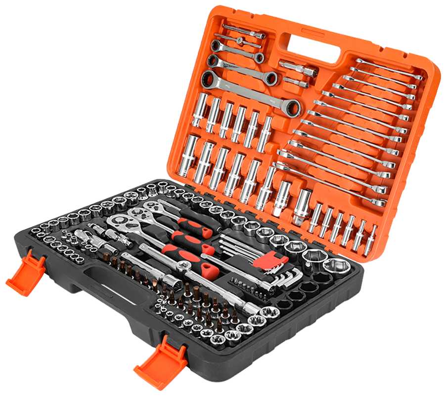 | Дополнительная информация : | ТОРЦЕВЫЕ ГОЛОВКИ И ПРИНАДЛЕЖНОСТИ 1/2" 17 шт. - Головки 6-гранные: 10, 11, 12, 13, 14, 15, 16, 17, 18, 19, 20, 21, 22, 24, 27, 30, 32 мм 6 шт. - Головки 6-гранные удлиненные: 10, 19 мм 3 шт. - Головки Е-стандарт: E20, E22, E24 4 шт. - Головки 6-гранные ударные: 17, 23 мм 2 шт. - Головки 6-гранные свечные: 16, 21 мм 2 шт. - Удлинители: 125, 250 мм 1 шт. - Трещотка: 250 мм, 24 зубца 1 шт. - Кардан: 70 мм 1 шт. - Скользящий адаптер: 凸1/2" x 凹3/8" ТОРЦЕВЫЕ ГОЛОВКИ И ПРИНАДЛЕЖНОСТИ 3/8" 11 шт. - Головки 6-гранные: 9, 10, 19 мм 6 шт. - Головки 6-гранные удлиненные: 10, 15 мм 6 шт. - Головки Е-стандарт: E10, E11, E12, E14, E16, E18 2 шт. - Удлинители: 75, 150 мм 1 шт. - Трещотка: 205 мм, 24 зубца 1 шт. - Кардан: 55 мм ГОЛОВКИ СО ВСТАВКАМИ 3/8" 3 шт. - SLOTTED: SL4, SL5.5, SL6.5 3 шт. - PHILLIPS: PH1, PH2, PH3 3 шт. - POZIDRIVE: PZ1, PZ2, PZ3 5 шт. - HEX: H3, H4, H5, H6, H8 6 шт. - TORX: T20, T30, T40, T45, T50, T55 ТОРЦЕВЫЕ ГОЛОВКИ И ПРИНАДЛЕЖНОСТИ 1/4" 13 шт. - Головки 6-гранные: 4, 4.5, 5, 5.5, 6, 7, 8, 9, 14 мм 6 шт. - Головки 6-гранные удлиненные: 4, 9 мм 5 шт. - Головки Е-стандарт: E4, E5, E6, E7, E8 2 шт. - Удлинители: 50, 100 мм 1 шт. - Трещотка: 150 мм, 24 зубца 1 шт. - Вороток Т-образный: 110 мм 1 шт. - Отвертка-вороток: 150 мм 1 шт. - Кардан: 40 мм 1 шт. - Держатель бит: 25 мм БИТЫ 1/4" 4 шт. - POZIDRIVE: PZ0, PZ1, PZ3 6 шт. - TORX: T10, T15, T20, T25, T27, T30 КЛЮЧИ 12 шт. - Ключи комбинированные: 8, 19 мм 3 шт. - Ключи трещоточные накидные: 8х10, 12х13, 17х19 мм 9 шт. - Ключи шестигранные с шаром: 1.5, 2, 2.5, 3, 4, 10 мм ПРОЧИЕ ИНСТРУМЕНТЫ 1 шт. - Ударопрочный кейс: 460x330x90 |