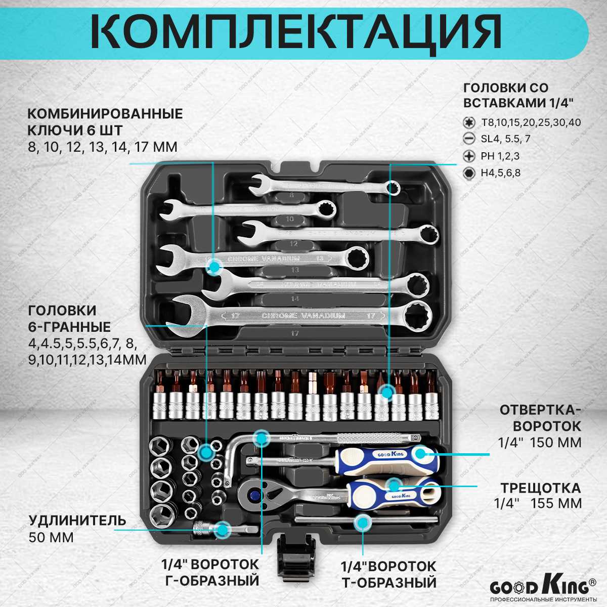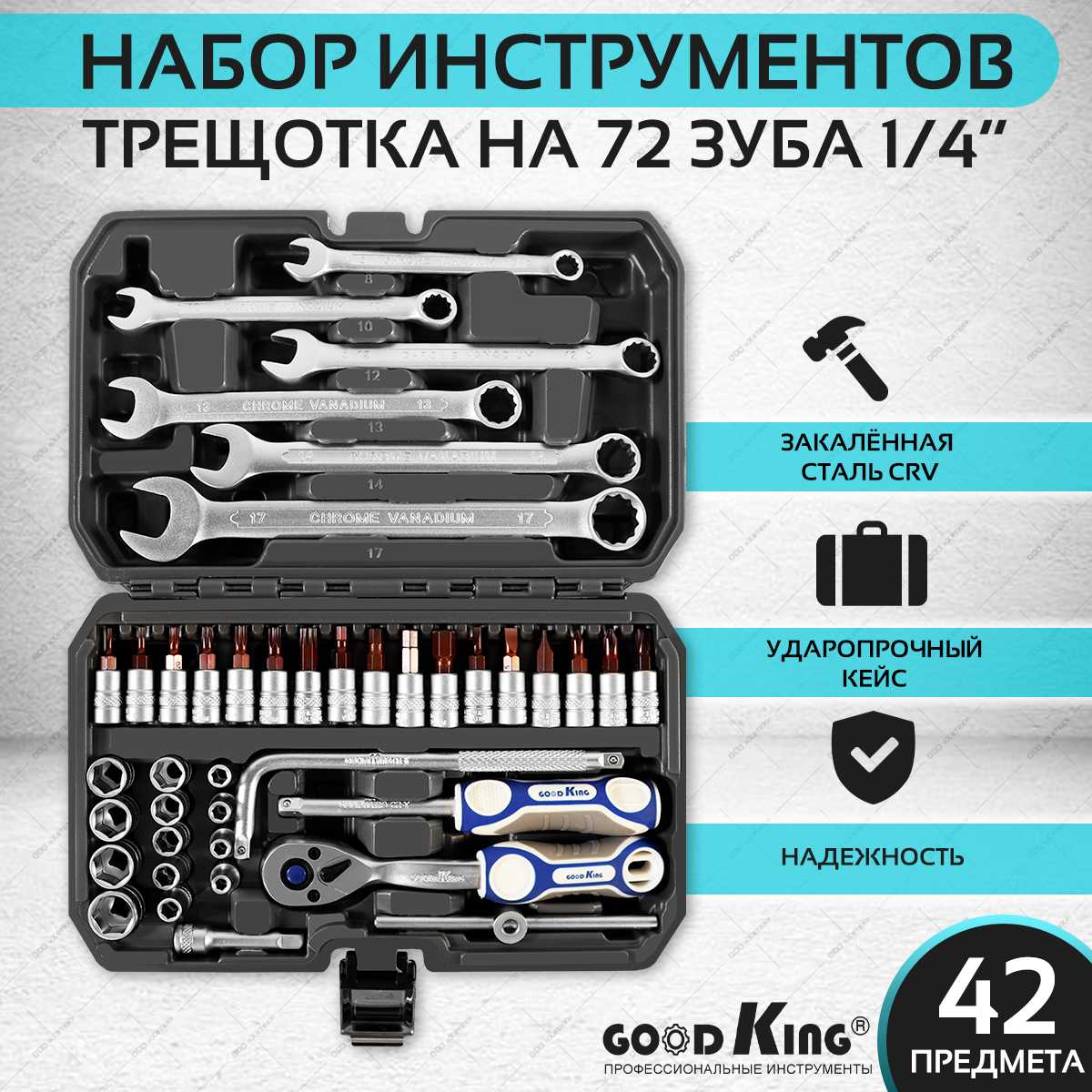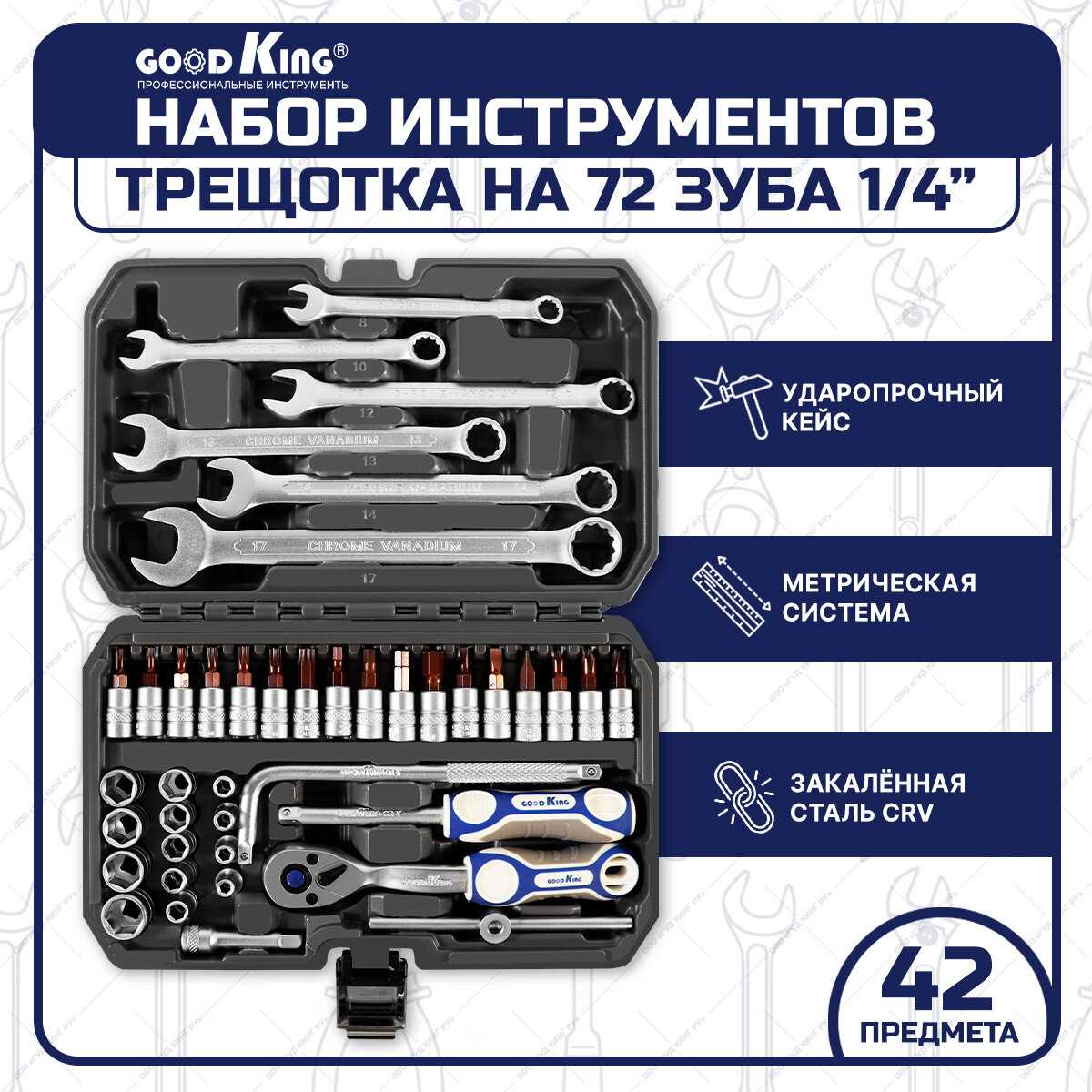 Характеристи GoodKing Набор инструментов для автомобиля (42 предмета)