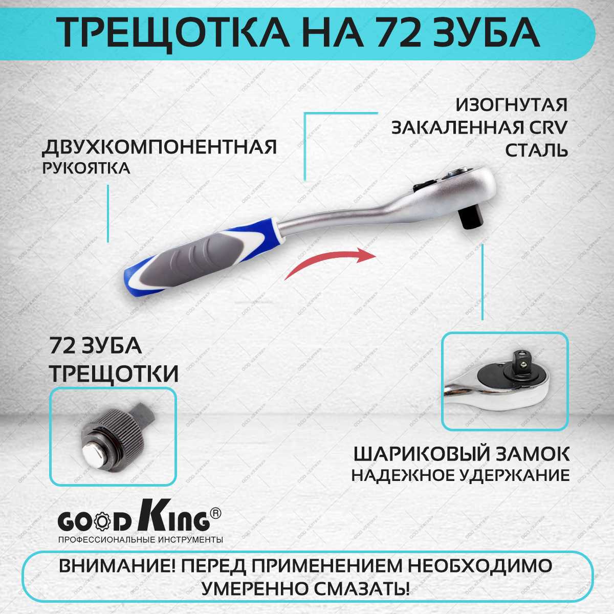 - Трещотка с 72 зубьями обеспечивает малый угол поворота (5°), удобна в стесненных условиях.