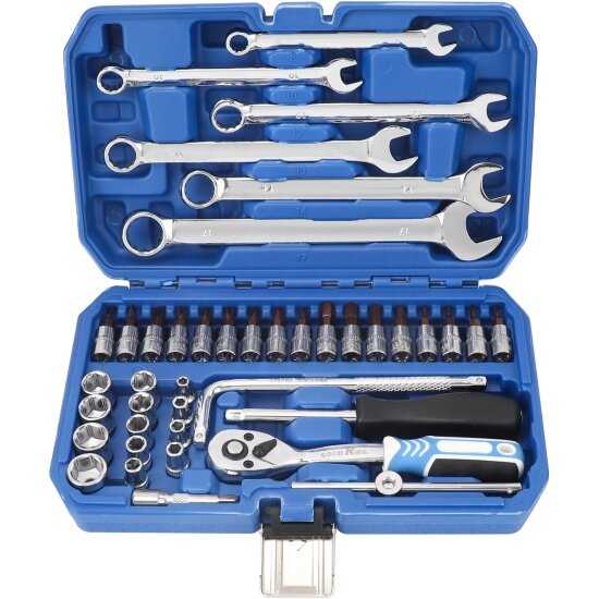 Набор содержит 44 предмета, включая биты, головки и удлинители, что покрывает базовые нужды. Критичный недостаток — отсутствие головок на 8 мм, а также размеров 15-17 мм, отмеченное в нескольких отзывах. Для сложных авторемонтов комплектация может быть недостаточной. -