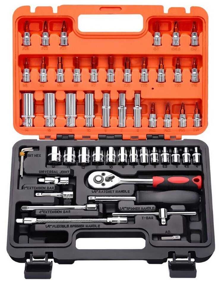 - Регулярно хвалят наличие всех необходимых головок, удлиненных вариантов, бит включая Torx для иномарок и переходников.