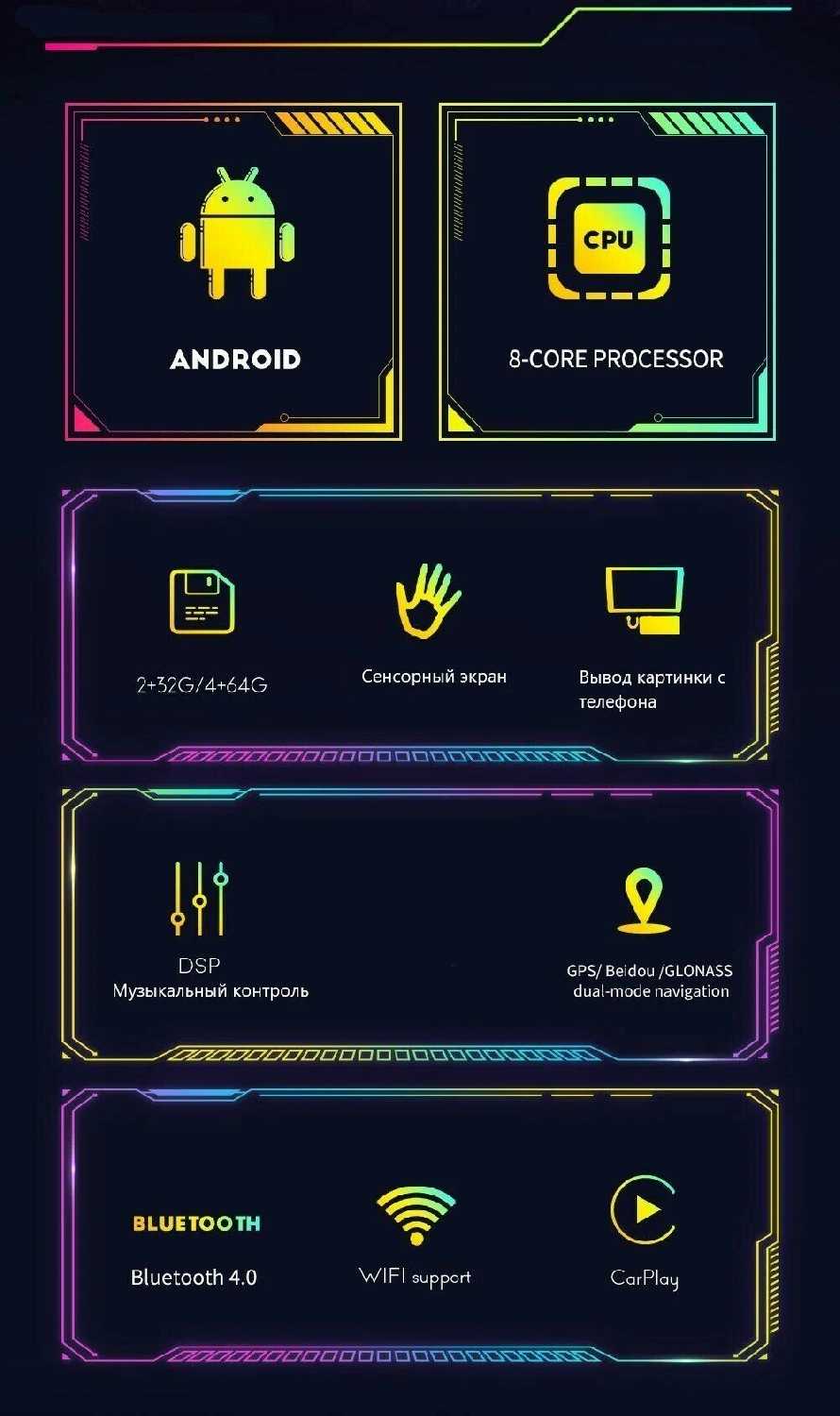 - + отлично смотрится в авто, возможно слушать Яндекс музыку и смотреть ютубчик в пробке!