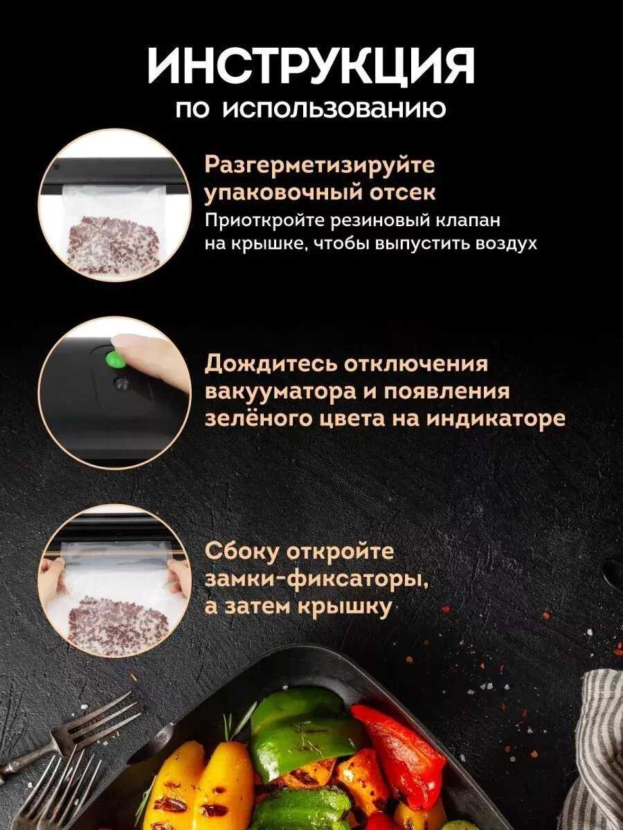 Подробная комплектация : | вакууматор, инструкция на руссом, коробка |