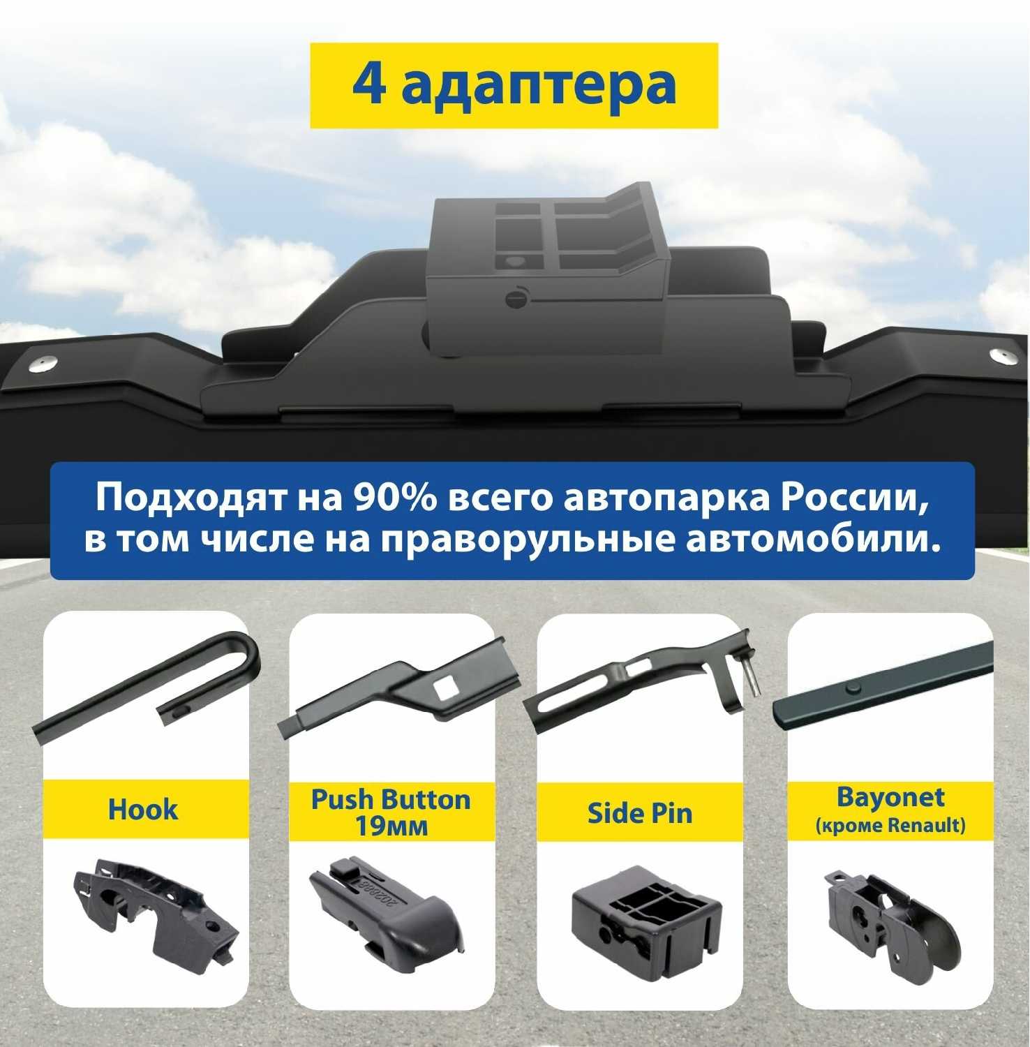 ΠΡΠΈΡΠΈΡΠ΅ΡΠΊΠΈ Π²Π°ΠΆΠ½ΠΎ ΡΠΎΡΠ½ΠΎ ΡΠΎΠ±Π»ΡΠ΄Π°ΡΡ ΡΠ°Π·ΠΌΠ΅ΡΡ, ΡΠ΅ΠΊΠΎΠΌΠ΅Π½Π΄ΠΎΠ²Π°Π½Π½ΡΠ΅ Π΄Π»Ρ ΠΌΠΎΠ΄Π΅Π»ΠΈ Π°Π²ΡΠΎ. ΠΠ°ΠΏΡΠΈΠΌΠ΅Ρ, Π΄Π»Ρ Volvo XC60 ΠΏΠ°ΡΡΠ°ΠΆΠΈΡΡΠΊΡΡ ΡΠ΅ΡΠΊΡ Π»ΡΡΡΠ΅ Π±ΡΠ°ΡΡ 480 ΠΌΠΌ Π²ΠΌΠ΅ΡΡΠΎ 510 ΠΌΠΌ β ΠΈΠ½Π°ΡΠ΅ Π²ΠΎΠ·ΠΌΠΎΠΆΠ΅Π½ Π½Π΅ΠΎΡΠΈΡΠ°Π΅ΠΌΡΠΉ "ΡΡΡΠ΅ΠΉ" ΠΏΠΎ ΡΠ΅Π½ΡΡΡ ΡΡΠ΅ΠΊΠ»Π° ΠΈ Π·Π°Π΄Π΅Π²Π°Π½ΠΈΠ΅ ΡΠ»Π΅ΠΌΠ΅Π½ΡΠΎΠ² ΠΊΡΠ·ΠΎΠ²Π°. Π ΠΊΠΎΠΌΠΏΠ»Π΅ΠΊΡΠ΅ Π΅ΡΡΡ ΠΏΠ΅ΡΠ΅Ρ ΠΎΠ΄Π½ΠΈΠΊΠΈ Π΄Π»Ρ Π±ΠΎΠ»ΡΡΠΈΠ½ΡΡΠ²Π° ΠΊΡΠ΅ΠΏΠ»Π΅Π½ΠΈΠΉ.