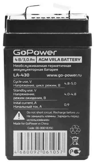 - Приходит заряженным на 12,5–13,2 В, готов к использованию сразу.