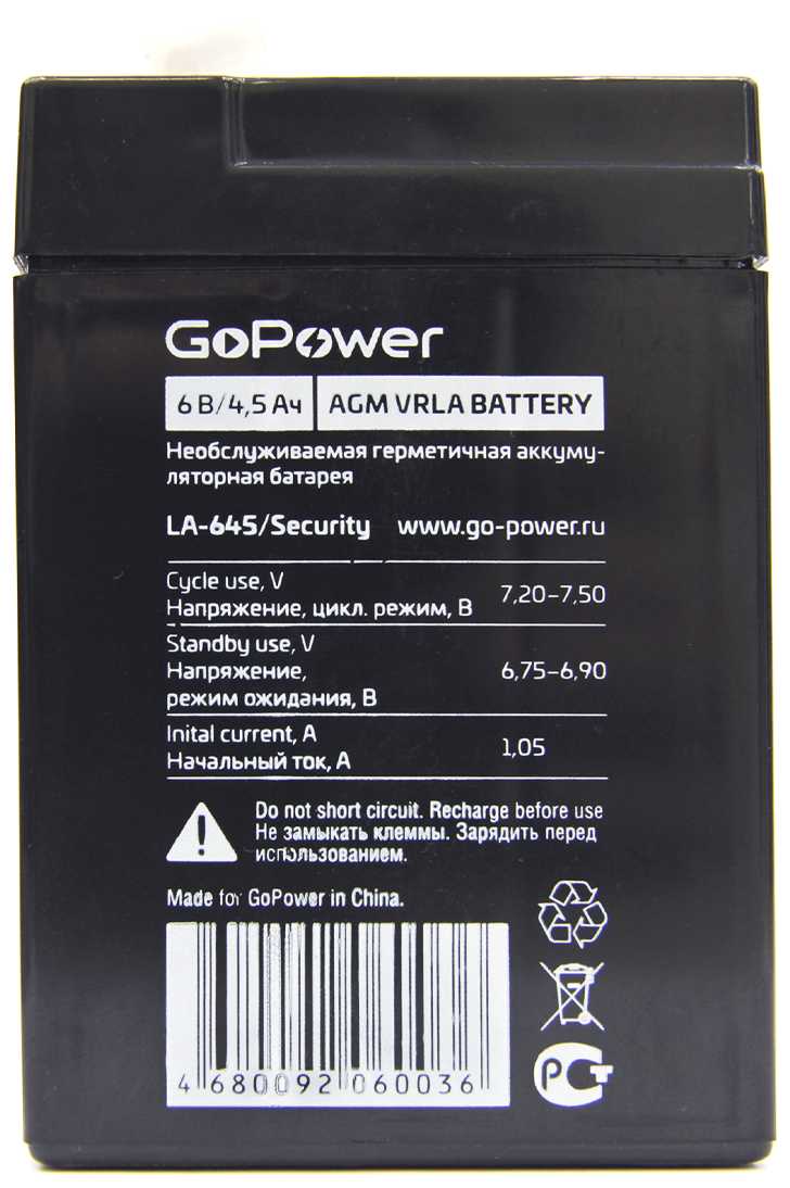80 отзывов пользователей o GoPower LA-645/security 6V 4.5Ah