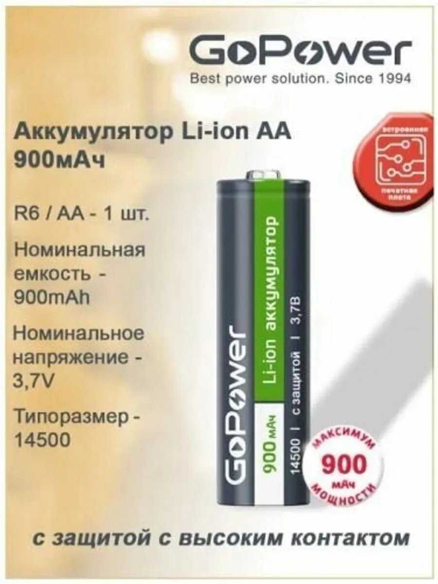 Отзывы о Аккумулятор GoPower Li-ion 14500 AA BL1 (3.7V 900mAh)