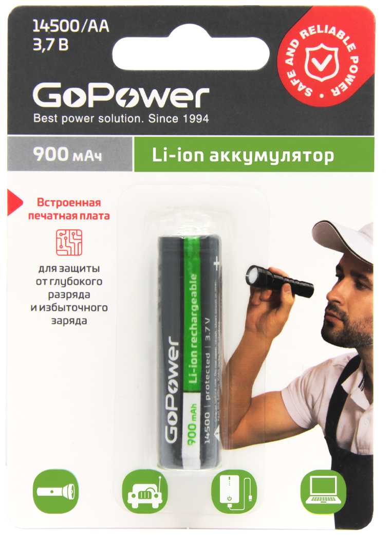17 отзывов пользователей o GoPower Li-ion 14500 AA BL1 (3.7V 900mAh)
