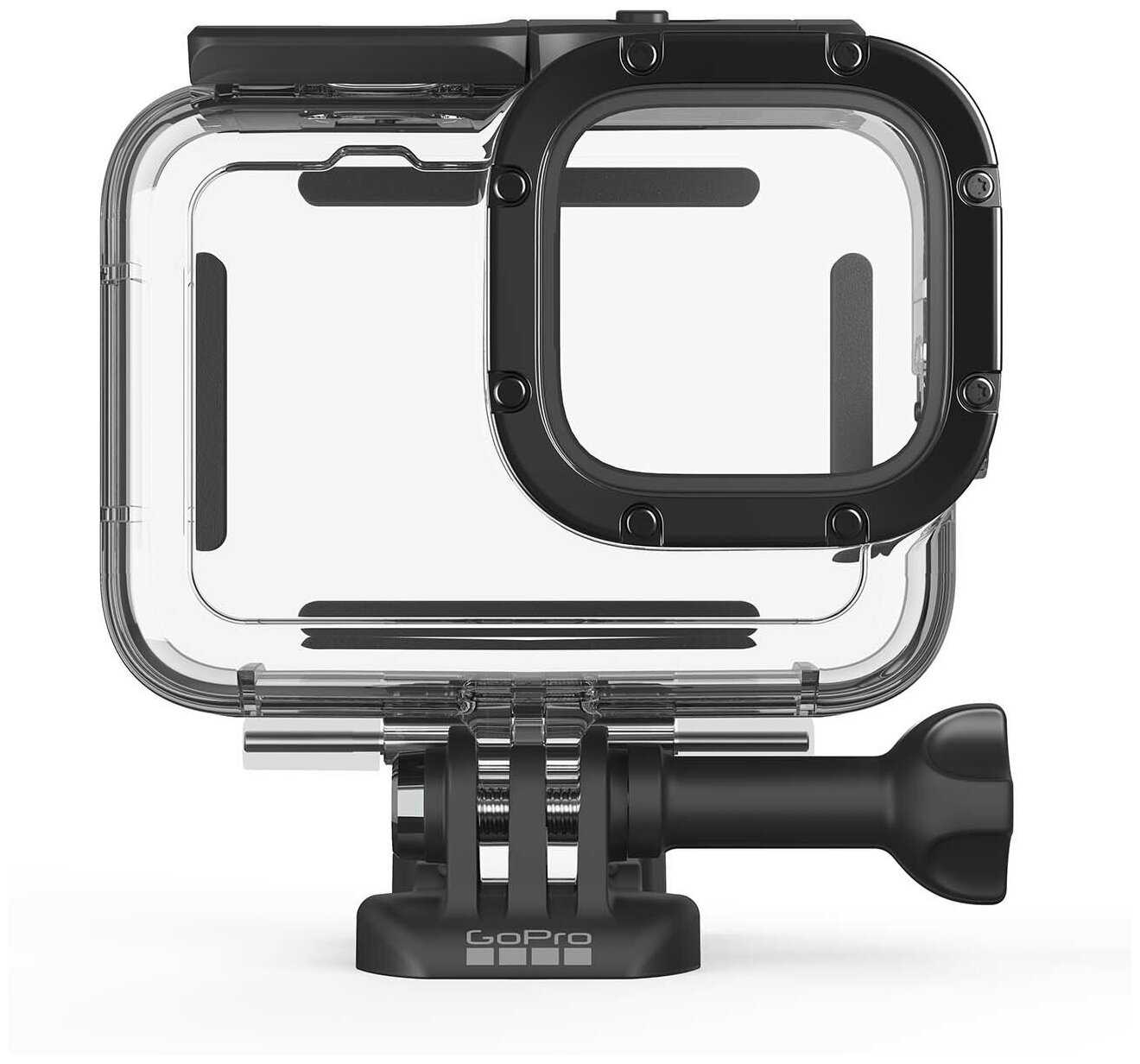 В комплекте идет: бокс, дополнительная задняя крышка(рамка), чтобы иметь доступ к экрану, крепление GoPro.