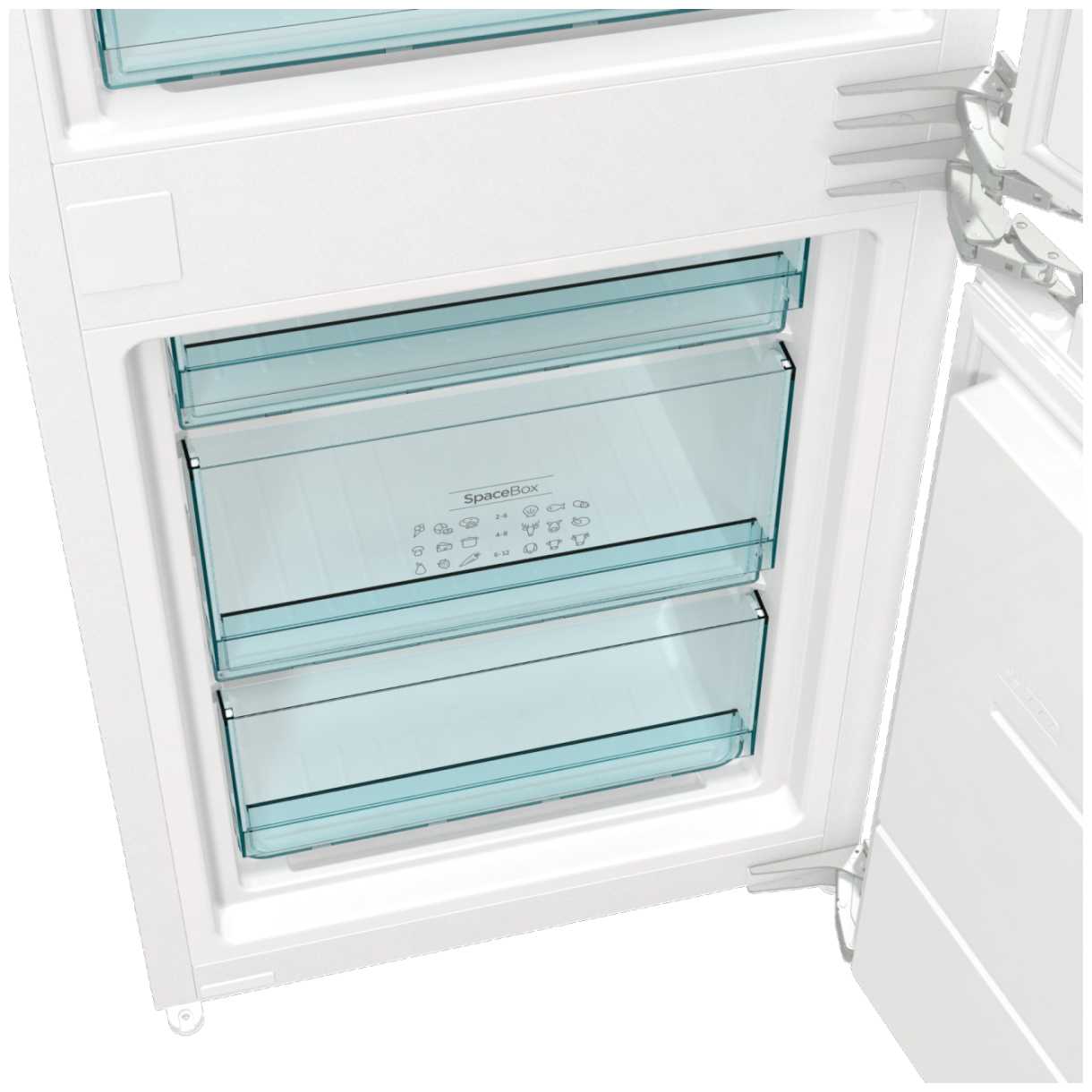 Несмотря на компактные габариты встройки, морозилка вмещает большие куски мяса и объемные упаковки благодаря трем глубоким выдвижным ящикам. Функция быстрой заморозки (-24°C) предотвращает образование "каши" из ягод, сохраняя их структуру. Однако при загрузке большого количества теплых продуктов возможна временная потеря температуры. -