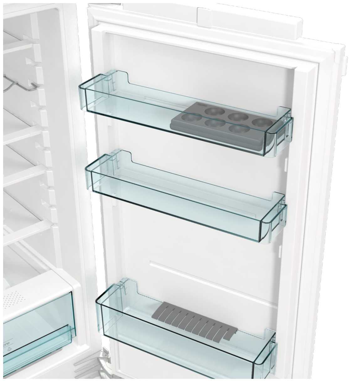 - Дверные полки адаптированы под высокие бутылки (до 35 см).