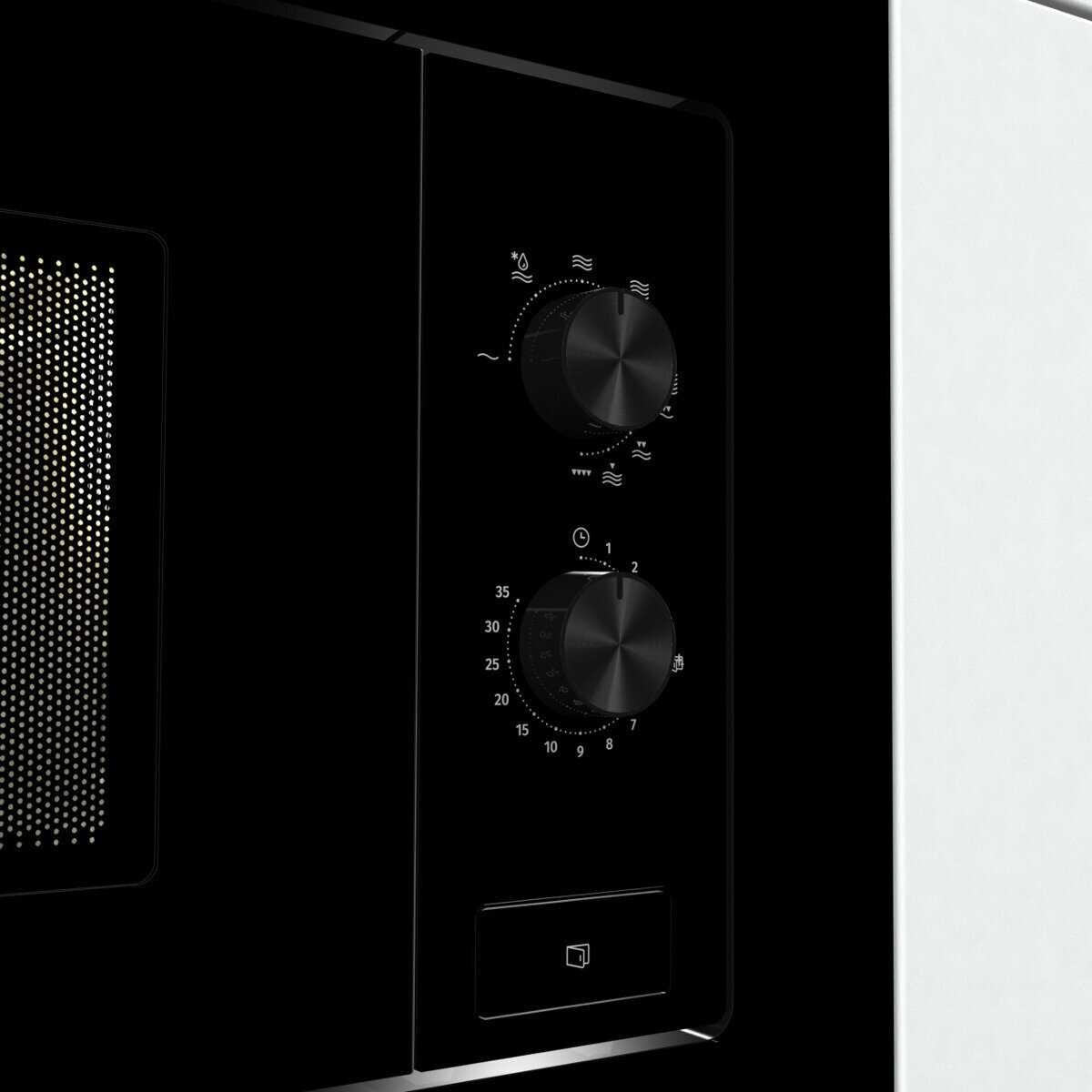 Внутренний объем микроволновки соответствует стандартам встраиваемой техники, хотя некоторые пользователи изначально опасались, что он окажется недостаточным. По факту владельцы подтверждают, что внутрь свободно помещается тарелка диаметром 20 см, а также возможна готовка целой курицы. Объем оптимален для стандартных задач разогрева и разморозки, но меньше, чем у большинства отдельно стоящих моделей. -