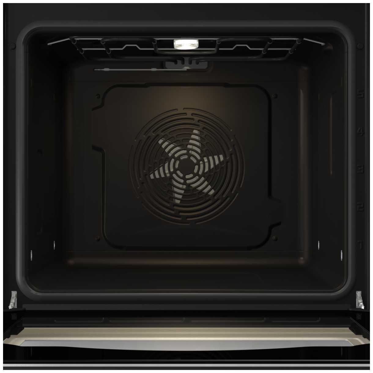 - Вентилятор распределяет тепло по всей камере, что исключает необходимость вращения противня. Например, печенье на всех уровнях приобретает одинаковую румяность.