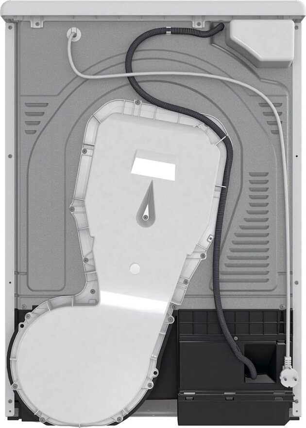 Аппарат требует свободного пространства за задней стенкой для вентиляции горячего воздуха. При установке в колонну со стиральной машиной важно учесть, что дверца открывается вправо, что может не совпадать с соседней техникой. Для слива конденсата рекомендуется прямое подключение к канализации — это избавляет от необходимости постоянно опорожнять бак. -