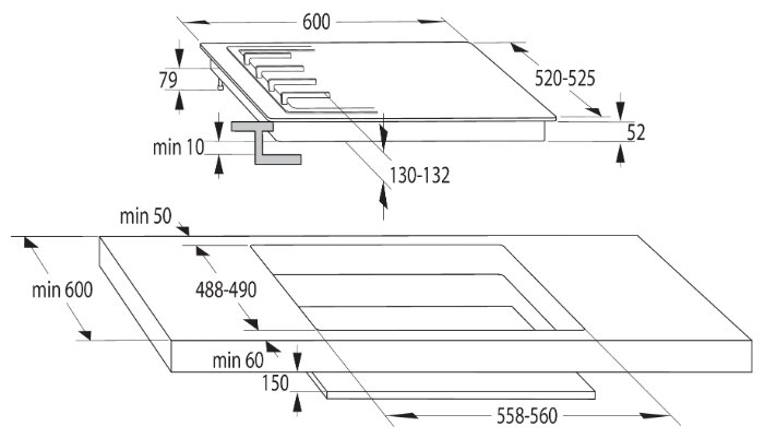 - + Защита газовых конфорок. Газ не поступает, пока не сработает пьезоэлемент на поджиг, а также прекращается подача газа, если огонь погас.
