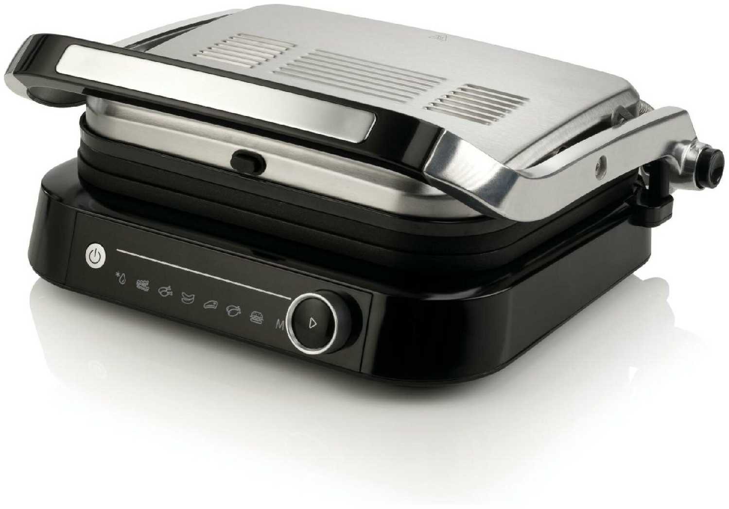 | Особенности : | антипригарное покрытие, контактный гриль, крышка, поддон для сбора жира, регулировка высоты верхней панели, съемные пластины |