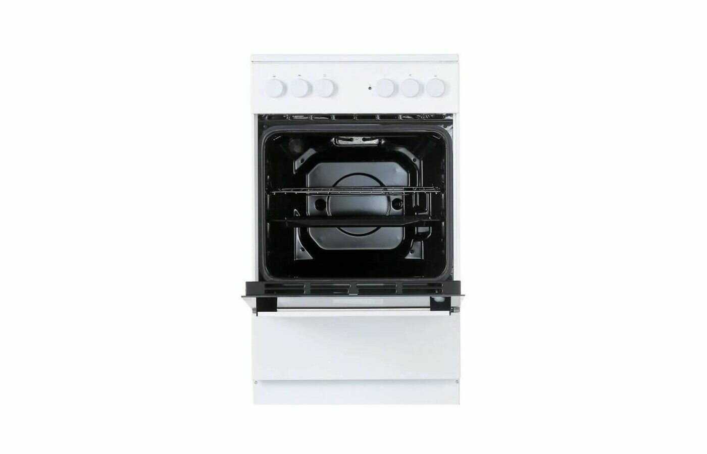 Конструкция и материалы: Корпус выполнен из эмалированной стали с белым глянцевым покрытием, которое придает плите минималистичный вид. Дверца духовки оснащена одним стеклом, которое нагревается незначительно во время работы. Ручки управления имеют рельефное покрытие, предназначенное для лучшего хвата, но оно быстро забивается грязью и требует частой чистки. Противни в комплекте включают один с высокими бортами для жидких блюд, но стандартный лист для выпечки часто деформируется при нагреве. Верхняя панель устойчива к царапинам, но периметр подвержен ржавчине при контакте с влагой. Стенки плиты нагреваются до высоких температур при длительной работе конфорок, что создает риск ожогов при случайном касании. Толщина металла достаточна для стабильности, но некоторые пользователи отмечают вибрацию ручек при включении. Общий вес плиты делает ее удобной для установки в стандартные кухонные проемы. Эмалевое покрытие вокруг конфорок начинает облупливаться у 10-15% пользователей через 1-2 месяца интенсивного использования. Внутренняя поверхность духовки покрыта эмалью, облегчающей удаление жира.