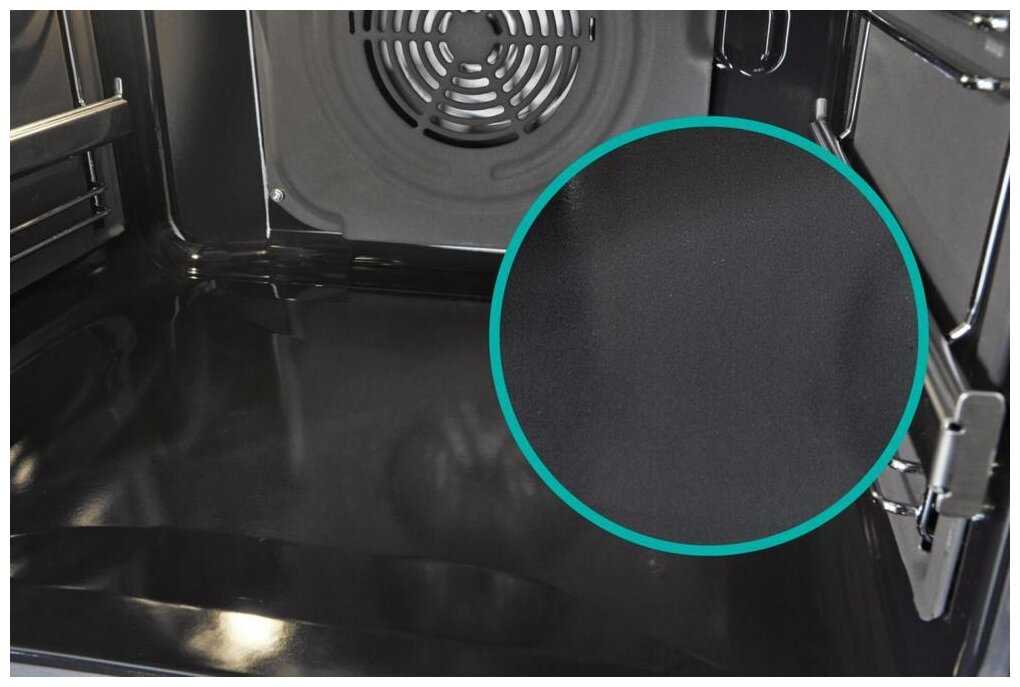 Утапливаемые переключатели, телескопические направляющие, материал покрытия нержавейка, 2ве двухконтурных комфорки, тристекла на дверце. Доводчик дверцы духовки.