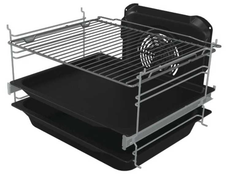 - Два противня (глубокий и стандартный), решетка, ящик для хранения снизу.