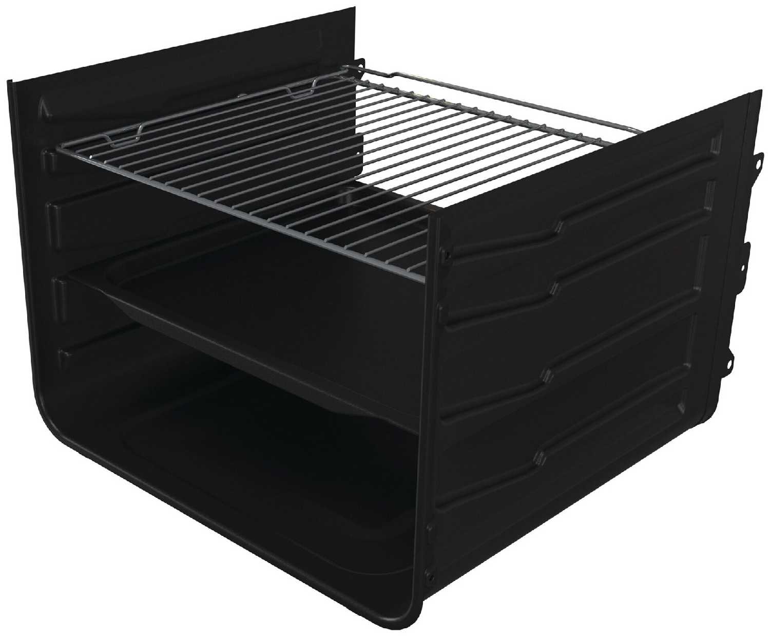 Ящик под духовкой предназначен только для металлической посуды (противни, сковороды). При активной работе духовки температура в нем значительно повышается — пластиковые предметы или легковоспламеняющиеся материалы хранить запрещено. Конструкция ящика имеет откидную дверцу, а не выдвижной механизм, что ограничивает вместимость. -
